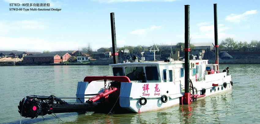我公司研制的STWD-80多功能清淤船是"十五"期間國家重大技術(shù)裝備研制項(xiàng)目,通過部級(jí)鑒定,該船具備水炮沖刷、射流拖淤、斗輪挖泥三種清淤功能,適用于內(nèi)河及潮水泥含量高的江河入海口、港道和堤岸,清淤效果顯著。射、拖、挖裝置共用一套動(dòng)力系統(tǒng),設(shè)備利用率高。